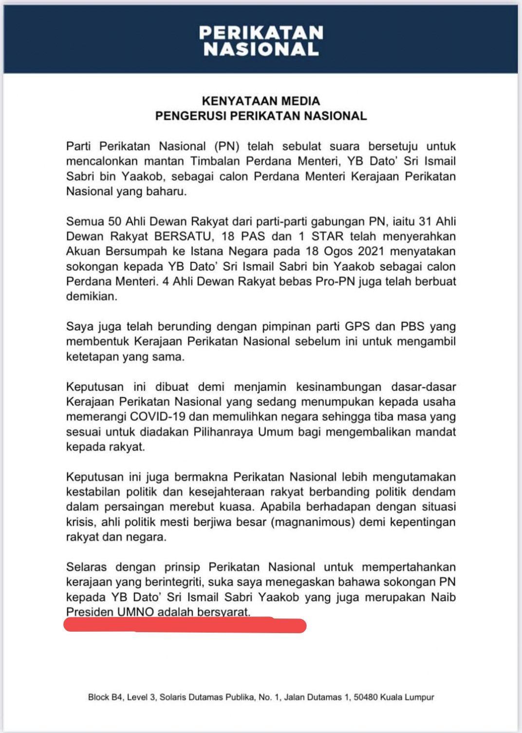 Istana Negara S Letter To The Speaker R Malaysia